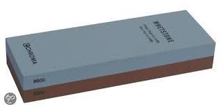 Nog een manier om je zakmes te slijpen is met een wetsteen. Dat zijn twee ruwe stenen die op elkaar zitten en waarvan de ene kant gladder is dan de andere kant. Het woordje 'wet' komt uit het Engels dat betekent 'nat', je moet de steen dus nat maken met spuug voordat je de steen gebruikt. In het water dompelen werkt ook, dat is wat frisser. En dan slijp je het zakmes/mes door er 8jes mee te draaien.