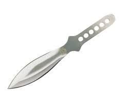 je kan het werpen en het is aan twee kanten scherp. En je kan er goed mee werpen (en iemand ermee verwonden) omdat het mes extra zwaar is gemaakt.